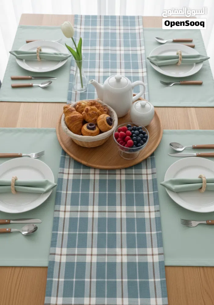 طقم طاولة بقماش تركي انتي طاش مضاد للبقع جودة عالية وسعر مناسب