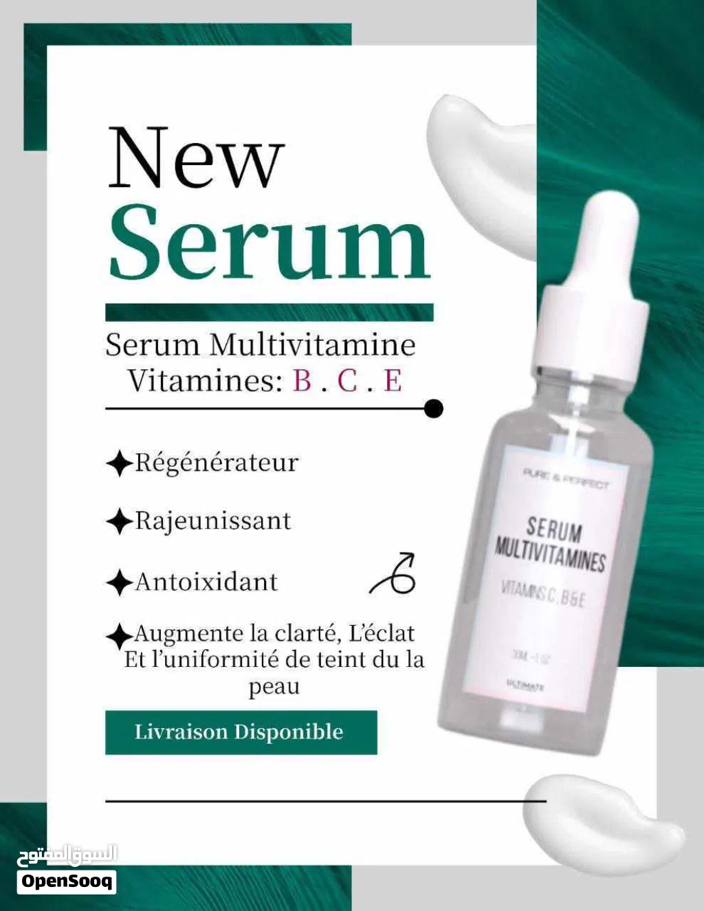 اكتشفي مصل الوجه متعدد الفيتامينات، وهو مركز حقيقي للطاقة لبشرتك، غني بالفيتامينات الأساسية (C، B، E) ومضادات الأكسدة، هذا المصل القوي يرطب البشرة وينشطها ويضيئها، تركيبته خفيفة الوزن وغير دهنية يتم امتصاصها بسرعة لتوفير ترطيب عميق مع تقليل العلامات المرئية للتعب والشيخوخة، مثالي لجميع أنواع البشرة، فهو يترك وجهك مشرقًا وناعمًا ومتجددًا بشكل واضح. اجعل هذا العلاج اليومي حليفًا أساسيًا للبشرة المتوهجة والصحية