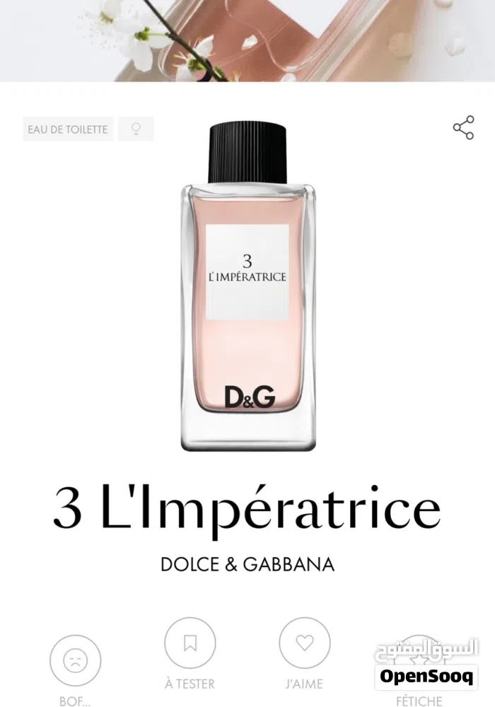 عطر امبيراتريس (L'Imperatrice 3) من دولتشي آند غابانا هو عطر نسائي زهري مائي منعش، يتميز بمزيج من الفواكه والأزهار والخشب، يبدأ بمقدمة من الكيوي والراوند والفلفل الوردي، وقلب من الياسمين والبطيخ والزهرة، وقاعدة من المسك والخشب والصندل، ليمنح شعوراً بالحيوية والطاقة والأنوثة القوية، وهو مناسب للمرأة العصرية والنشطة.