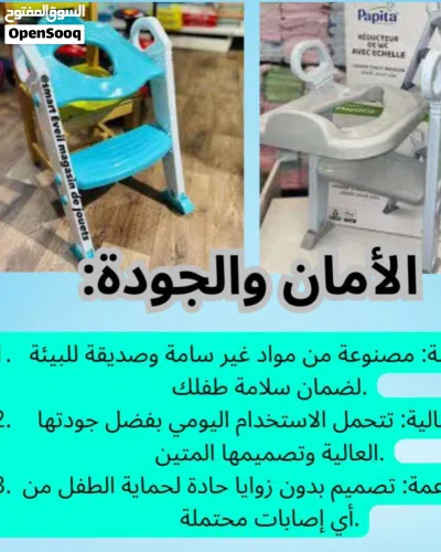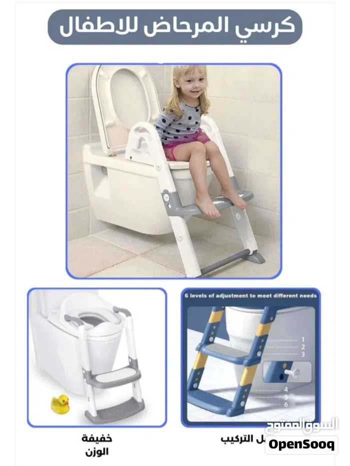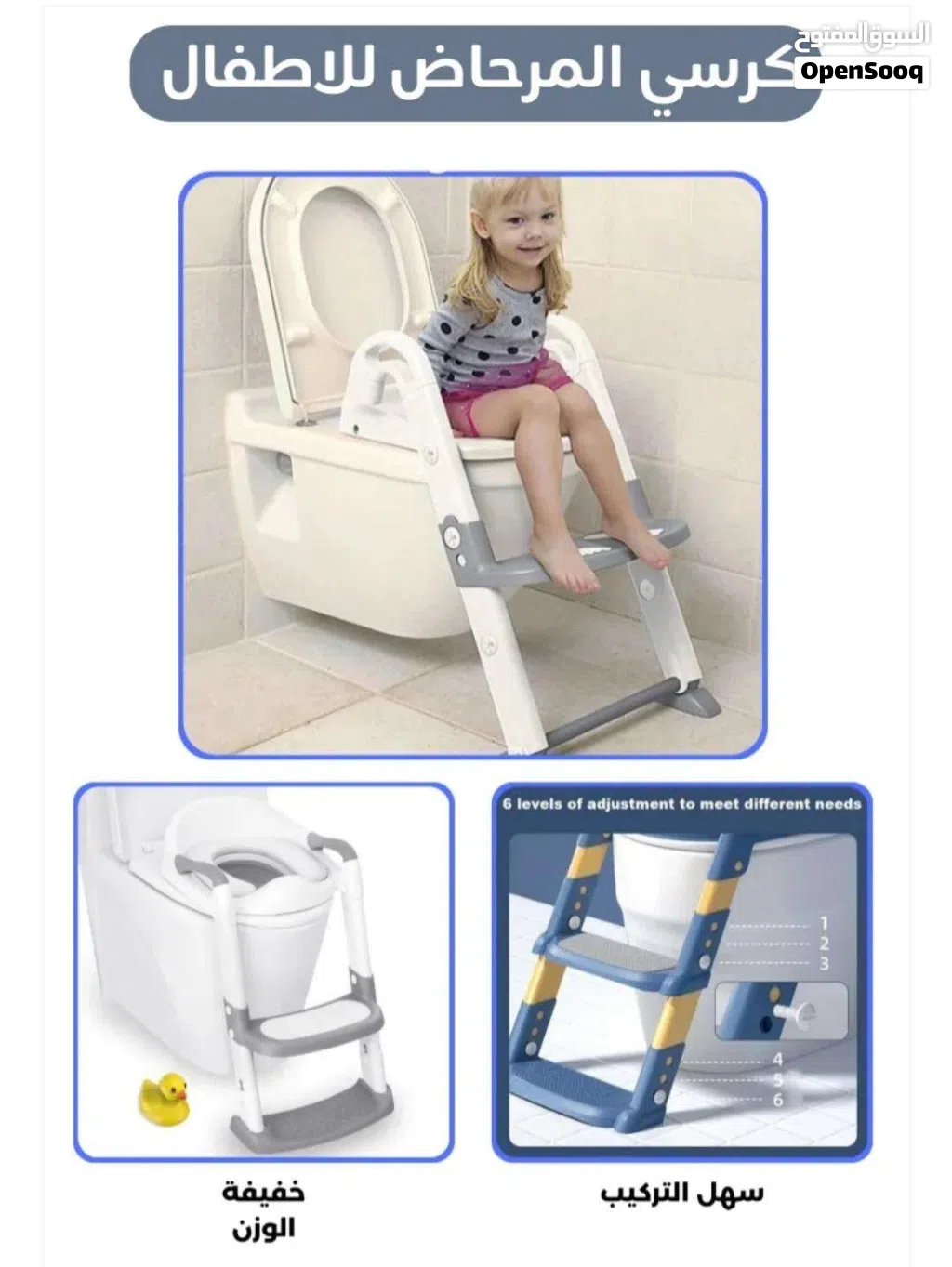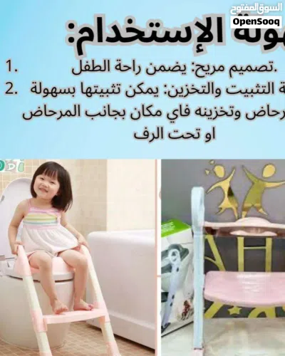 "اختر الأفضل لطفلك مع سلم المرحاض للأطفال. مصمم بأمان وراحة، ومناسب لجميع الأعمار. ساعد طفلك على الانتقال بسهولة إلى استخدام المرحاض. اجعل تدريب الحمام سهلًا وآمنًا. اطلب اليوم!"