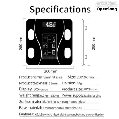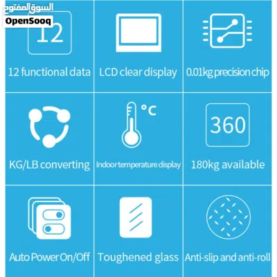 ميزان ذكي لتحليل وزن الجسم والدهون اتصال بتطبيق الهاتف الذكي يعرض 79 نوعًا من البيانات الصحية، يساعدك على مراقبة تقدمك ووضع خطة فعالة لخسارة الوزن. تحليل ذكي ودقيق مزود بشريحة ذكية لعرض بيانات الوزن، ونسبة الدهون، ودرجة الحرارة الحالية. تصميم أنيق وآمن حواف مستديرة غير مؤذية، قاعدة مانعة للانزلاق، يمكن وضعه في أي مكان من المنزل. يعمل ببطاريتين AAA سهل التشغيل مع عمر بطارية طويل، ويقيس من 3 حتى 180 كجم. جودة عالية مصنوع من زجاج مقوّى متين وآمن للاستخدام اليومي