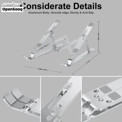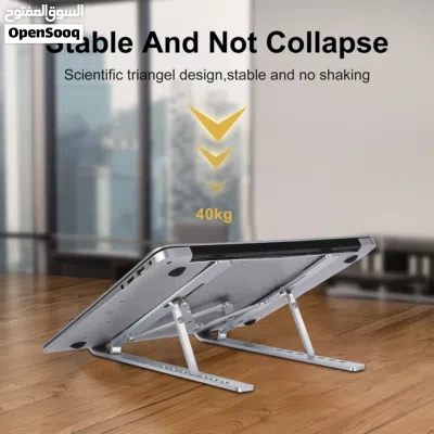 حامل لابتوب قابل للطي وخفيف الوزن (10–17.3 بوصة) • توافق واسع: يدعم جميع أجهزة الكمبيوتر المحمولة والأجهزة اللوحية (MacBook, Surface, Dell, HP, Lenovo...). • تصميم محمول وخفيف: يزن 0.3 كجم فقط، سهل الطي والنقل في حقيبة الظهر أو حقيبة اللابتوب. • تصميم مريح: 6 مستويات لضبط الارتفاع (1.35" إلى 5.34") لتصحيح وضعية الجلوس وتخفيف آلام الرقبة والظهر. • ثبات ومتانة: مصنوع من سبائك الألمنيوم عالية الجودة مع وسادات مانعة للانزلاق لحماية الجهاز. • تهوية فعالة: يسمح بتبديد الحرارة ويحمي اللوحة الأم من السخونة.Poids: environ 300GChargement maximum: 40KG6 hauteurs plage réglable: de 5.5cm à 15.5cm.Couleur: métal noir/métal argentMatériel: En alliage D’aluminiumEngrenages: 6Application: ordinateur portable/Notbook/tablette/iPad/téléphones intelligents