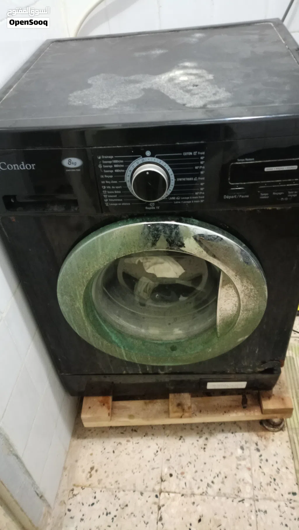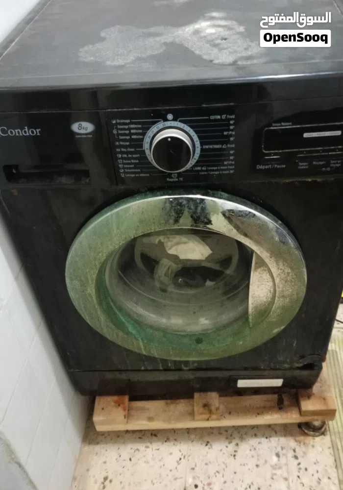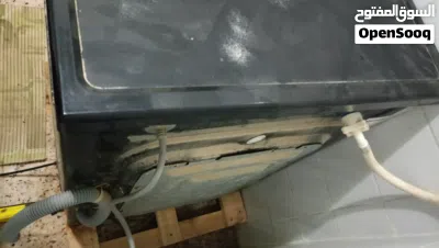 غسالة ملابس قديمة للبيع، تشتغل بشكل عادي لكن بها مشكلة وهي التحرك من مكانها أثناء الغسيل
