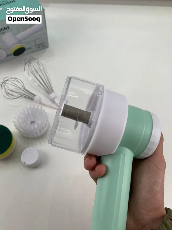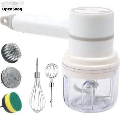 مفرمة كهربائية لاسلكية مزودة بـ 6 رؤوس قابلة للتبديل، تعمل كمفرمة خضروات وثوم، مخفوق بيض ودقيق، منظف حوض، منظف فرن، وغسالة أطباق صغيرة